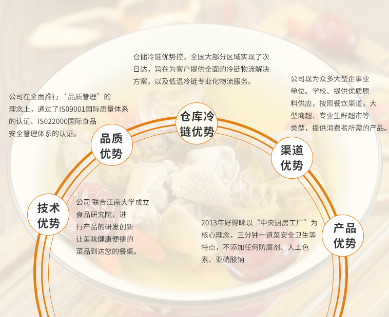 公司依托U8+ERP系统,建立产品质量安全追溯管理平台,整合产品质量安全全程追溯管理、供应商信用体系建设、冷链物流智慧监管等业务,实现线上追溯,有迹可查,网格监管,方便高效,流程对接,全程追溯,确保菜品品质稳定,消费者食用放心。